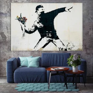 Tableau Street Art Banksy Lanceur de Fleurs