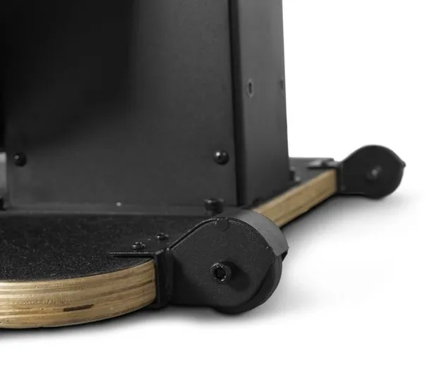 Le simulateur de ski de fond AirSki peut être monté sur un mur ou utilisé avec la plate-forme antidérapante avec ses roulettes, ce qui permet
