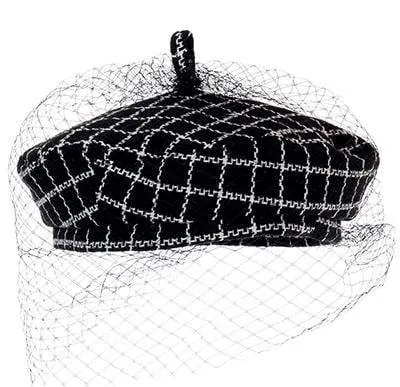 Béret femme français avec voile pour fête et mariage.