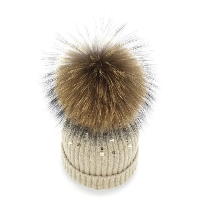 Bonnet avec Pompons et Perles : Élégance et Chaleur pour vos Hivers