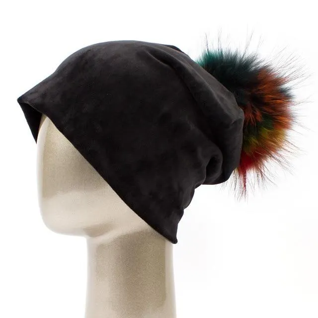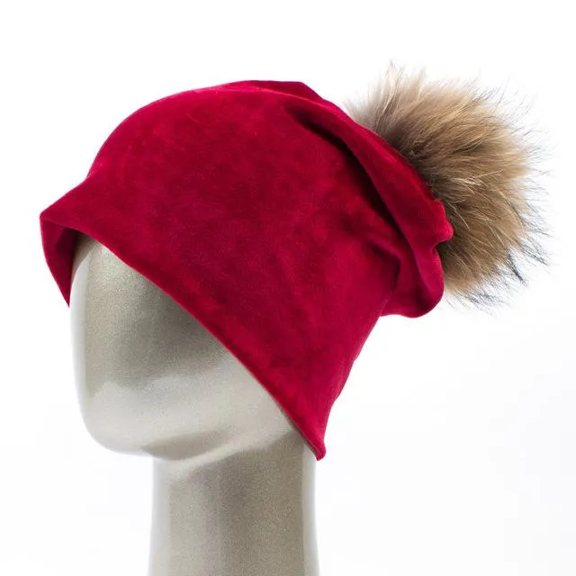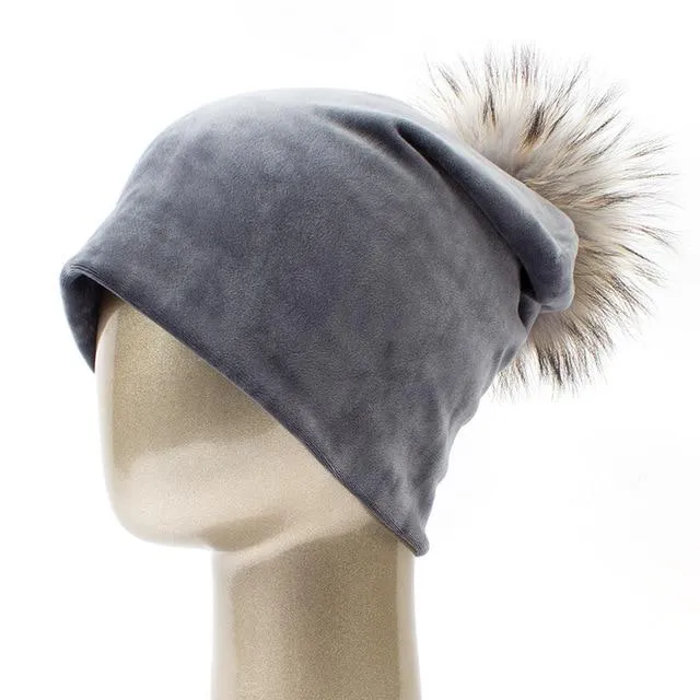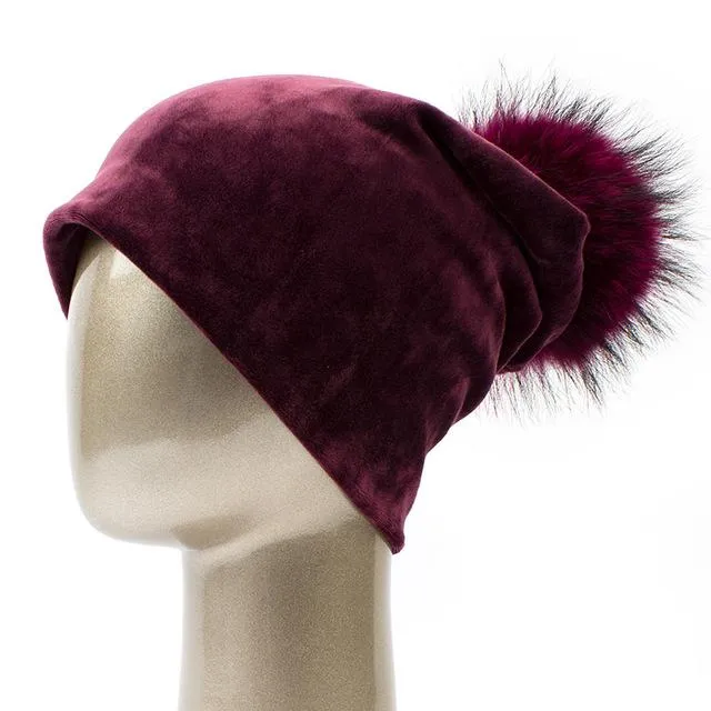 Bonnet décontracté en velours et pompon