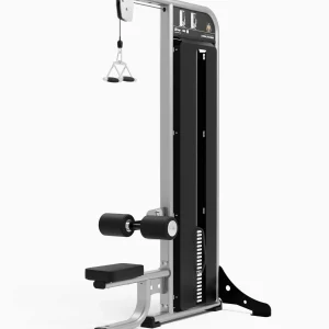 Cette machine poulie haute Lateral Pulldown EXIGO FITNESS à mouvements indépendants des tractions, est dotée de coussins d’appui des cuisses rembourrés pour un
