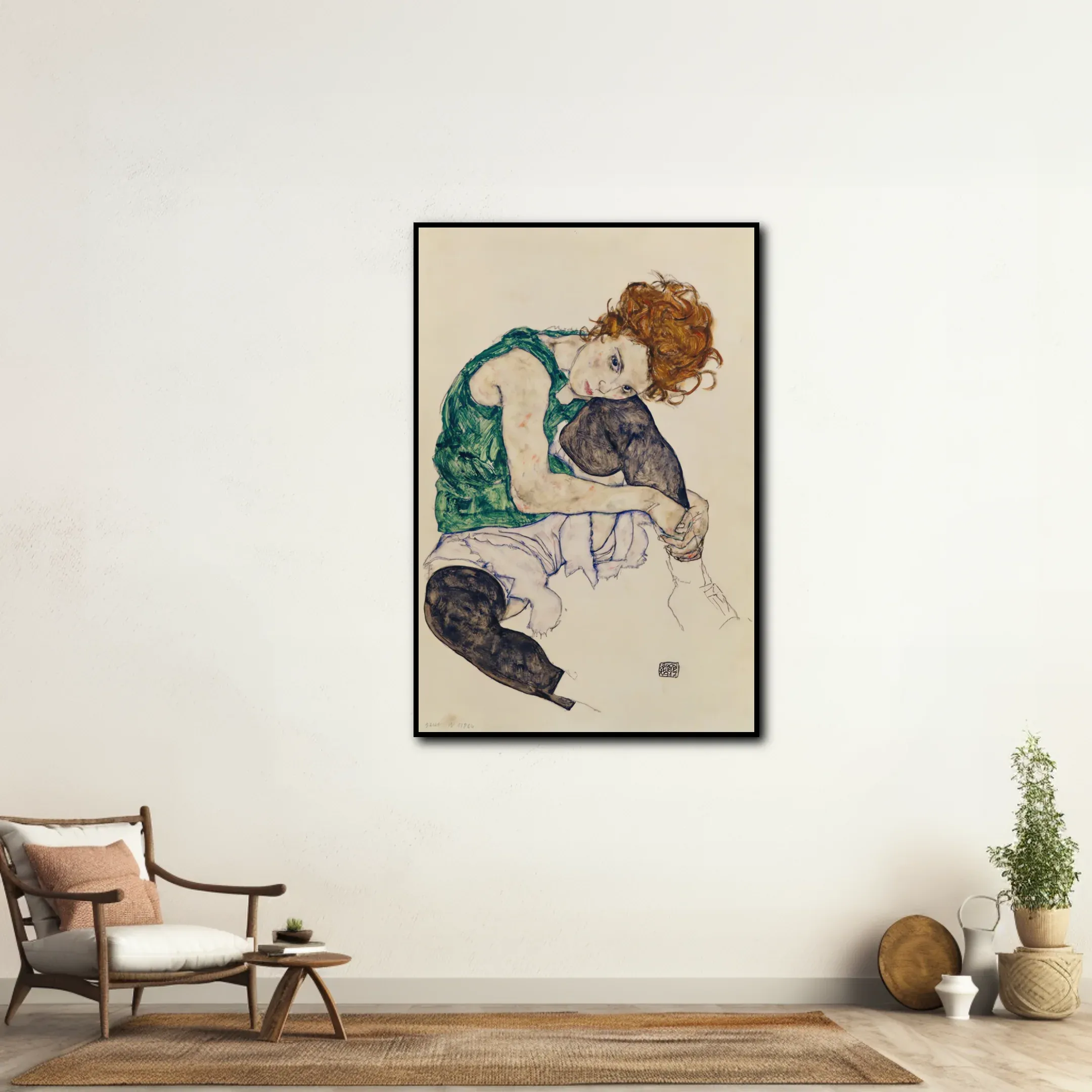 Femme assise avec la jambe repliée – Egon Schiele : Une œuvre saisissante pour votre intérieur