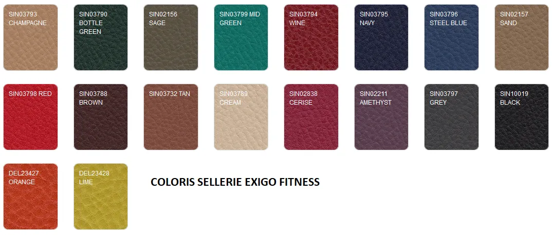 Choisissez parmi une gamme de couleurs métallisées, plates ou texturées. Si vous avez une couleur spécifique, EXIGO peut s’adapter à presque tous les modèles de couleurs.