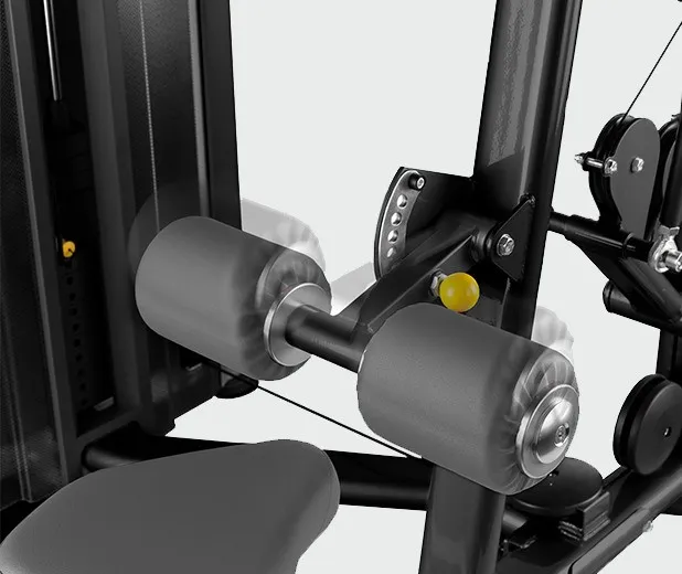 Calage des cuisses par un double rouleau réglable en hauteur sur 5 positions. Chaque utilisateur peut ainsi adopter la bonne posture au démarrage de l’exercice