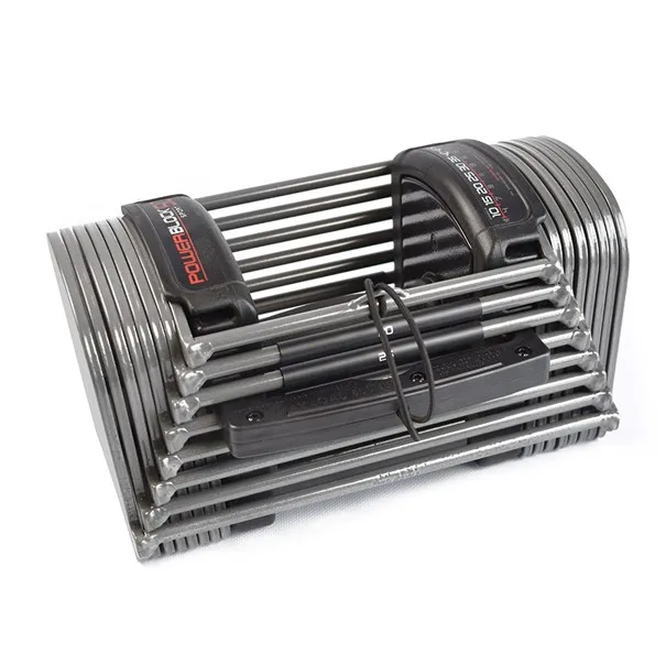 Une haltère automatique extensible PowerBlock est composée de multiples éléments d’un poids déterminé et qui s’emboîtent les uns dans les autres, chaque poids rendant l’haltère un peu plus lourde par incrémentation variable selon la référence d’haltère choisie. Les différents composants de l’haltère sont clipsés ensemble par double broche de sélection très robuste. Cette broche est rattachée à la poignée de la zone centrale des poids par un élastique très résistant. Il suffit de faire glisser les goupilles entre les poids pour choisir un poids et le fixer à la poignée. Il ne reste plus qu’à soulever la charge sélectionnée à l’aide de la poignée des poids et l’exercice commence.