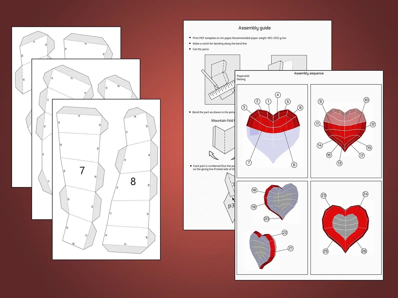 Le soleil se couche, et vous contemplez votre salon. Un vide sur le mur attire votre regard, et soudain, une idée lumineuse jaillit ! Pourquoi ne pas ajouter une touche de romantisme avec un papercraft de décoration murale en cœur en origami 3D ? Ce modèle captivant transformera votre espace en un havre de douceur et d’amour. Conçu pour les amateurs de loisirs créatifs, les décorateurs passionnés et les fans de design unique, ce cœur en papier est bien plus qu’un simple objet décoratif. C’est une véritable œuvre d’art qui raconte une histoire, celle de votre amour pour la créativité et l’élégance.