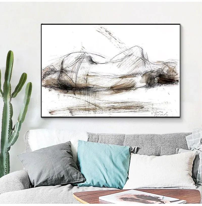 Cette Peinture de femme allongée minimaliste sur le thème du charme féminin et du nu pourra trouver sa place dans toutes les pièces de votre maison. Optez pour une décoration murale original. Nous vous recommandons de bien sélectionner parmi notre collection la peinture féminine qui vous correspondra le mieux.