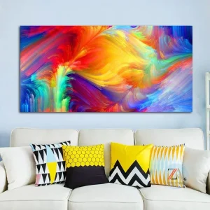- Type : Peinture sur toile avec des couleurs vives.
