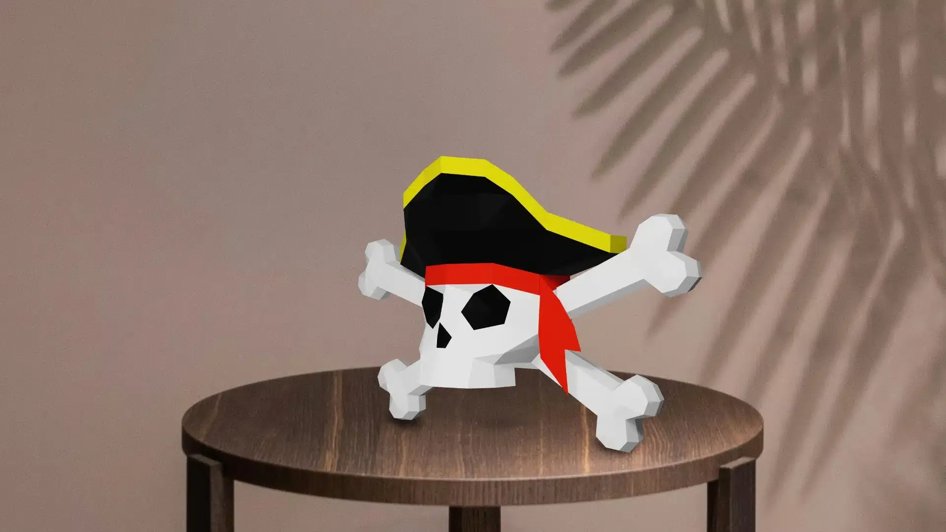 Fais souffler l’esprit des sept mers sur ta décoration avec ce crâne de pirate en papercraft 3D ! Cette sculpture en papier à l’allure redoutable est parfaite pour Halloween, une soirée à thème, un décor pirate ou un intérieur original.