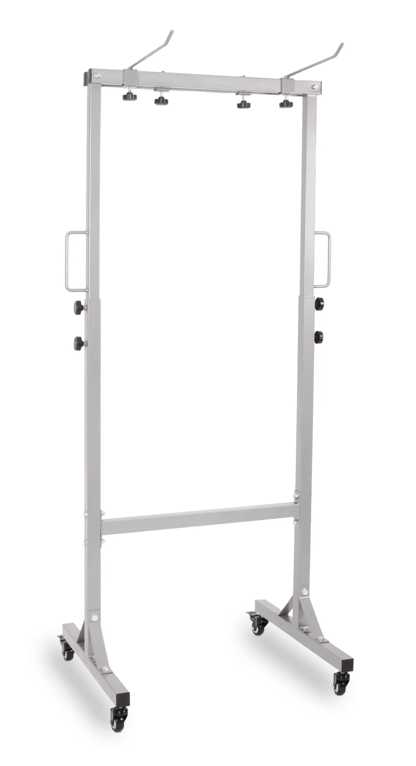 Très pratique et particularité de ce râtelier de rangement pour nattes de gym : il est aussi équipé de deux poignées latérales placées à mi hauteur sur les montants verticaux de la structure