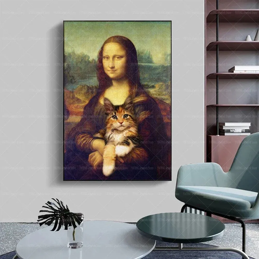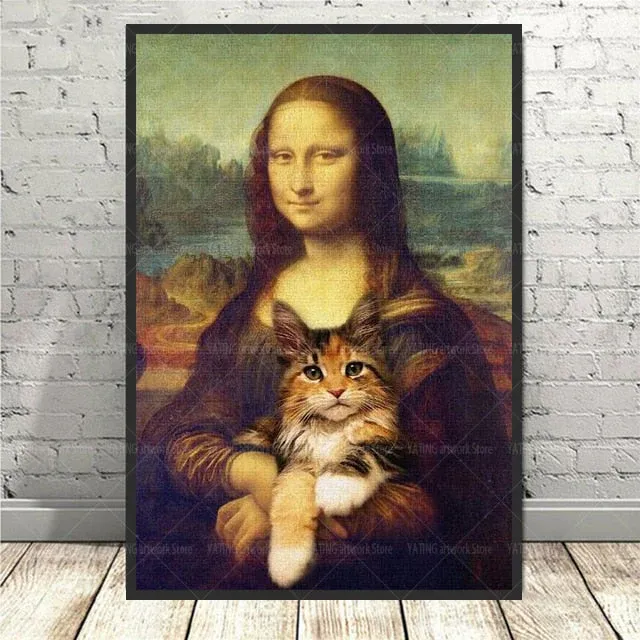 Découvrez le tableau Mona Lisa amusant. Une reproduction exceptionnelle de la célèbre toile de Léonard de Vinci, avec un chat sur les genoux bien sûr ! Offrez un regard rempli de joie et d’humour sur votre mur !
