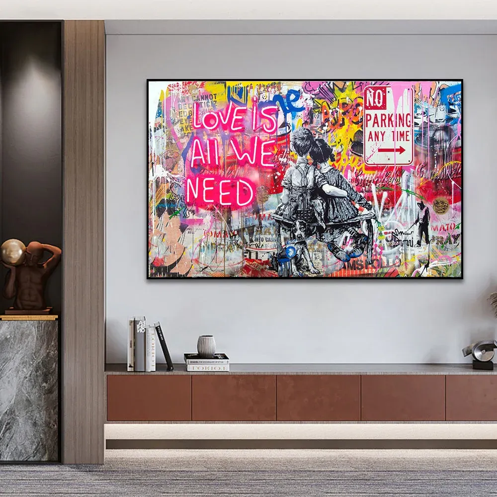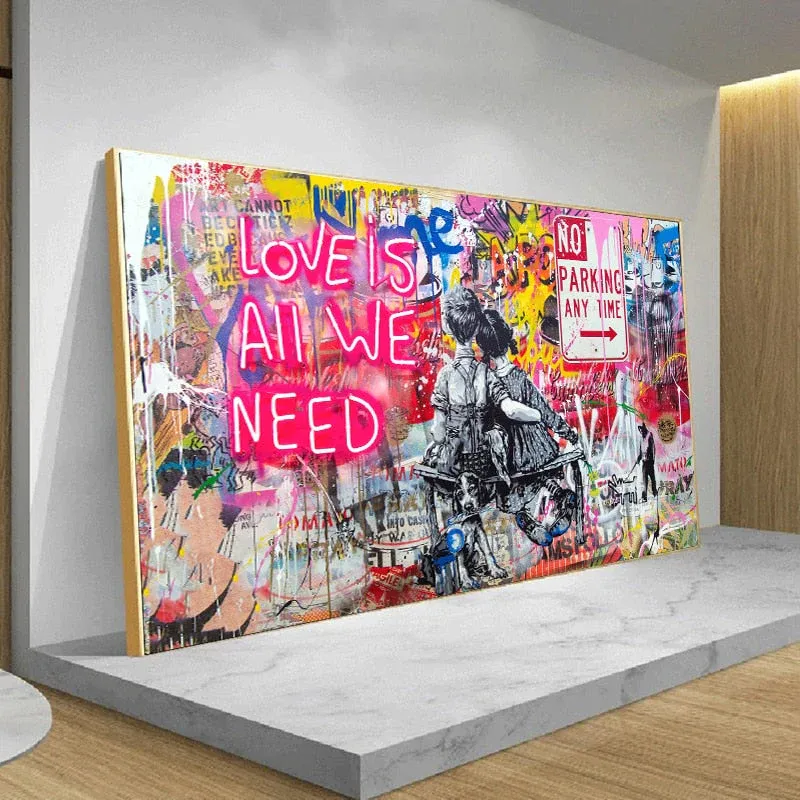 Pour ajouter une touche urbaine tendance à votre intérieur, choisissez le tableau Street Art Amour. Rafraîchissez votre décoration intérieure avec un élégant motif agrémenté de la signature stylée d’un graffiti.