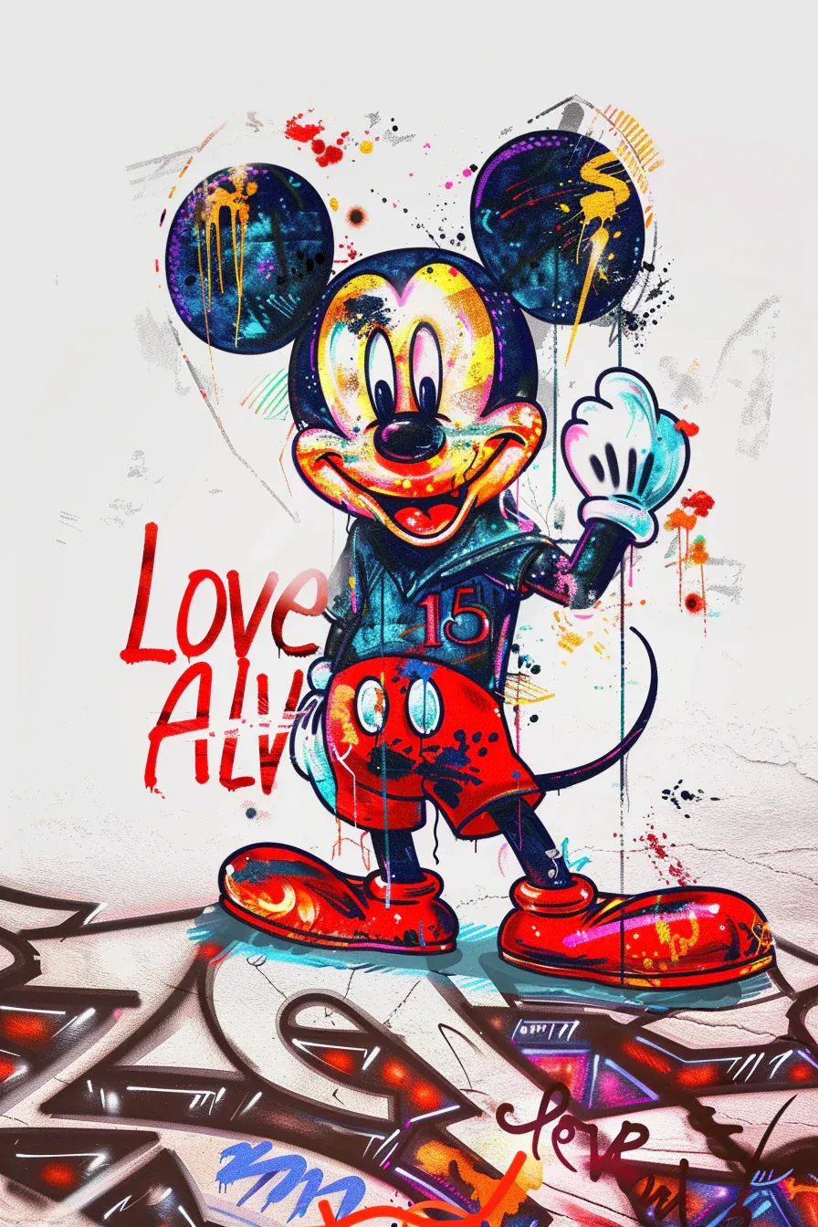 Invitez l’énergie urbaine avec le Tableau Street Art Mickey Love is All