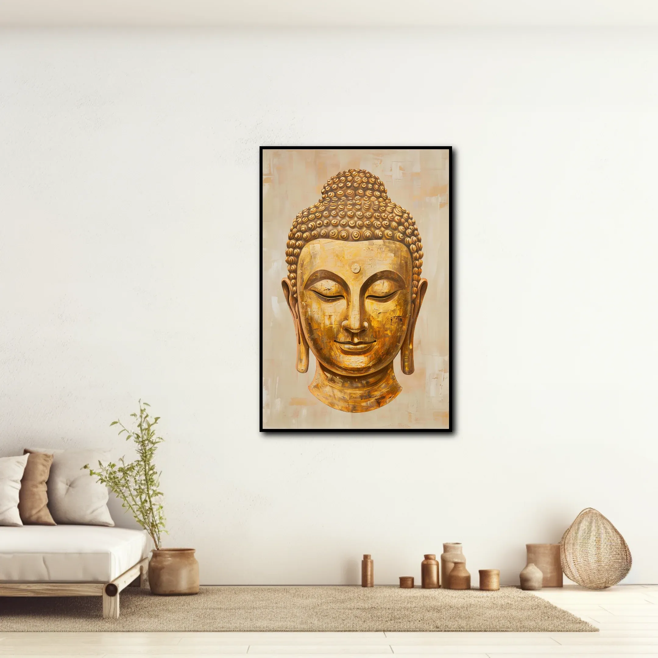Illuminez votre Espace avec le Tableau Tête de Bouddha Dorée