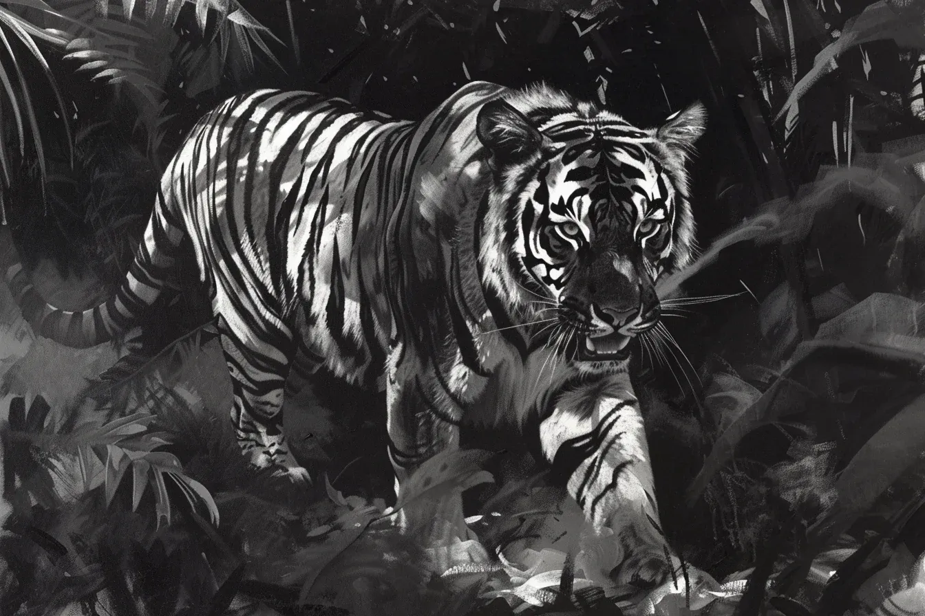 Captivez Votre Espace avec le Tableau Tigre Noir et Blanc