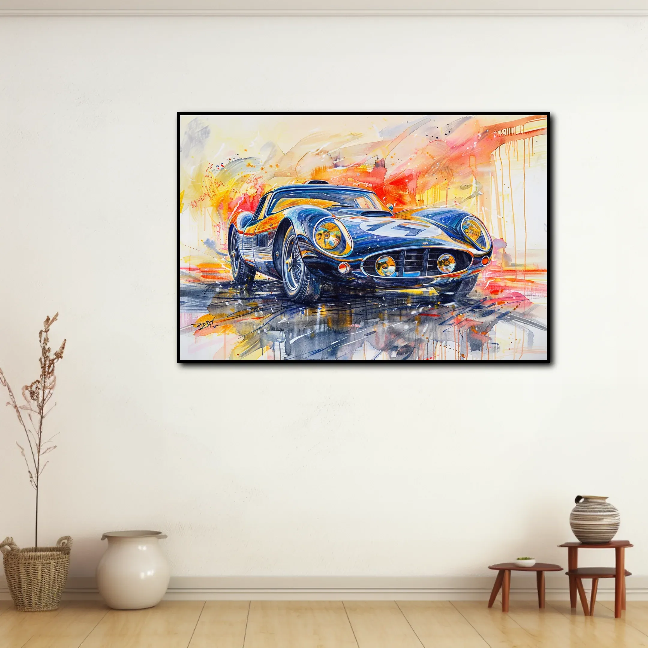 Idéal pour orner les murs de votre salon ou bureau, ce tableau de voiture de sport rétro associe élégance et nostalgie. Son style unique se marie parfaitement avec divers types de décoration, rendant chaque pièce plus vivante et sophistiquée. Une façon simple et efficace d’amener à la maison une part d’histoire automobile.