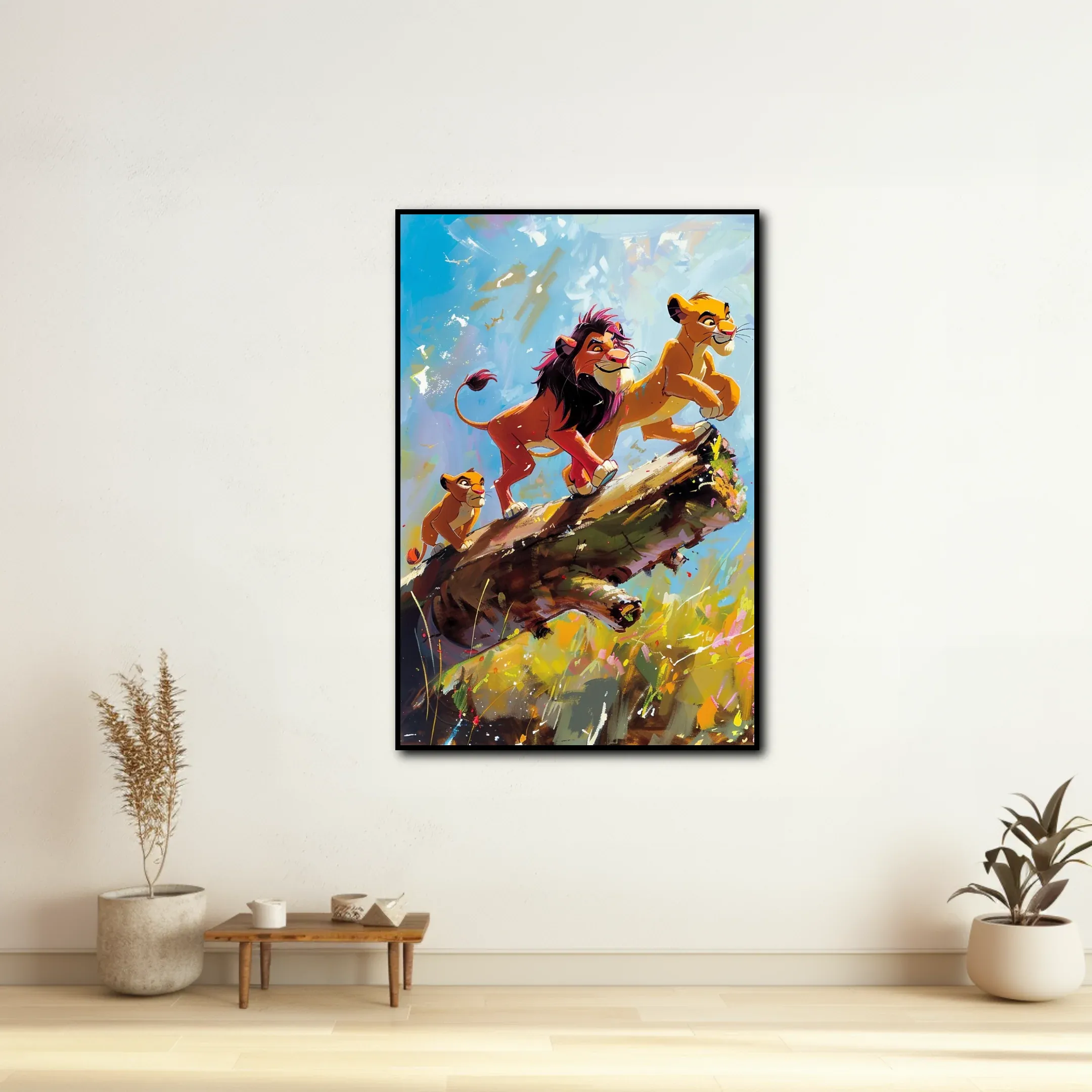 Nos Tableaux Disney Hakuna Matata sont conçus pour s’intégrer parfaitement à tout type de décoration intérieure. Associates-en un avec des accessoires colorés pour un style éclectique ou optez pour un look minimaliste en le plaçant sur un mur neutre. Chaque pièce est une invitation à la sérénité et à la joie de vivre, reflétant l’esprit sans souci de cette célèbre chanson.