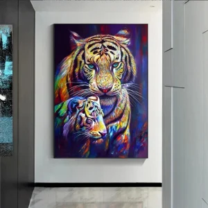 Tableau tigres contemporain coloré